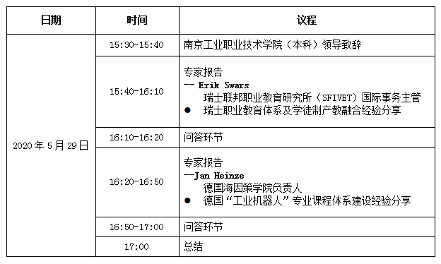 围绕“新起点 再出发”的校庆主题,我校将于2020年5月29日15:30-17:00举办“中欧职业技术教育高峰云论坛”活动。论坛邀请了瑞士联邦职业教育研究所(SFIVET)国际事务主管Erik Swars先生介绍瑞士职业教育体系及学徒制产教融合经验;邀请了德国海因策学院负责人Jan Heinze先生分享德国双元制课程体系建设(详见附件:专家简介)。